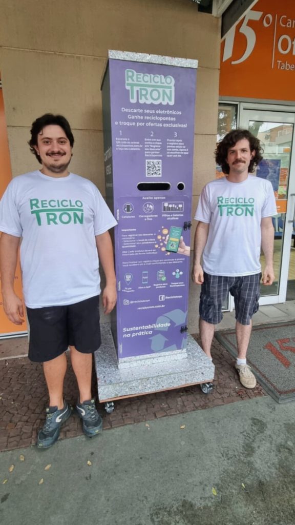 Todo material descartado é reutilizado em cursos de robótica e salas de informática. O projeto (www.reciclotron.com.br) inclui também um aplicativo. Através dele o interessado cadastra o material reciclável e acumula “reciclopontos” para trocar no comércio local, incluindo shoppings, lojas e até cervejaria.