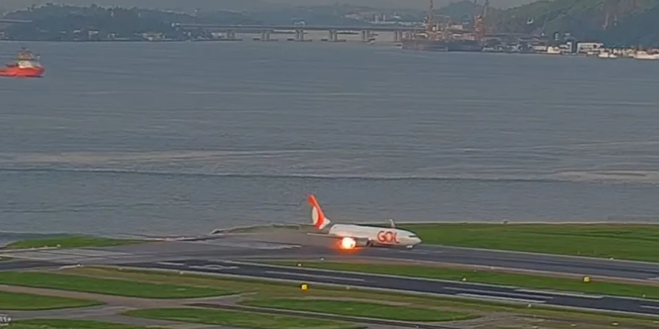 Turbina de avião pega fogo na decolagem no Aeroporto Santos Dumont e fecha pistas por uma hora