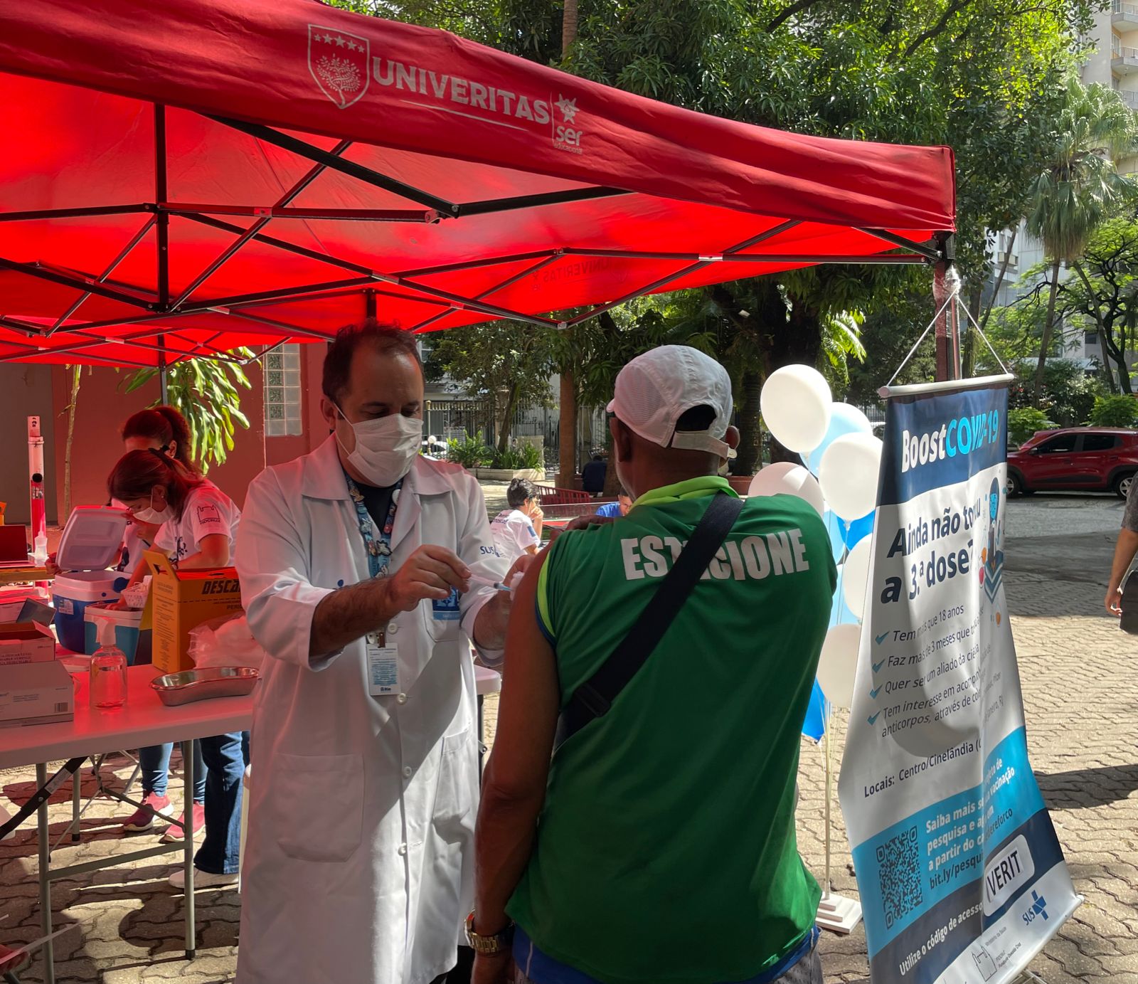 Projeto BoostCovid-19, da Univeritas, acontece no campus da instituição para quem ainda não tomou a 3ª dose. Inscrições são feitas pela internet