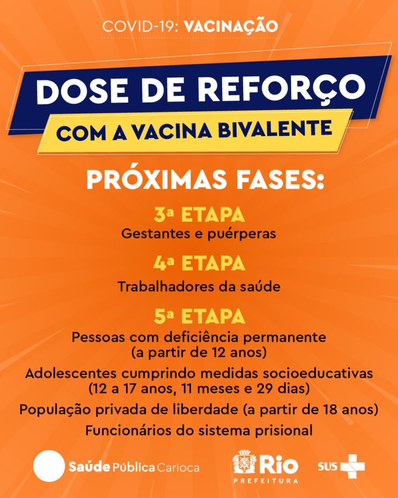 A SecretariaMunicipal de Saúde do Rio anunciou que vai começar, na próxima segunda-feira (6), uma nova etapa de imunização contra a Covid-19 na capital fluminense. A aplicação da vacina bivalente da Pfizer será destinada a todos os cariocas de 68 anos ou mais dos grupos prioritários.