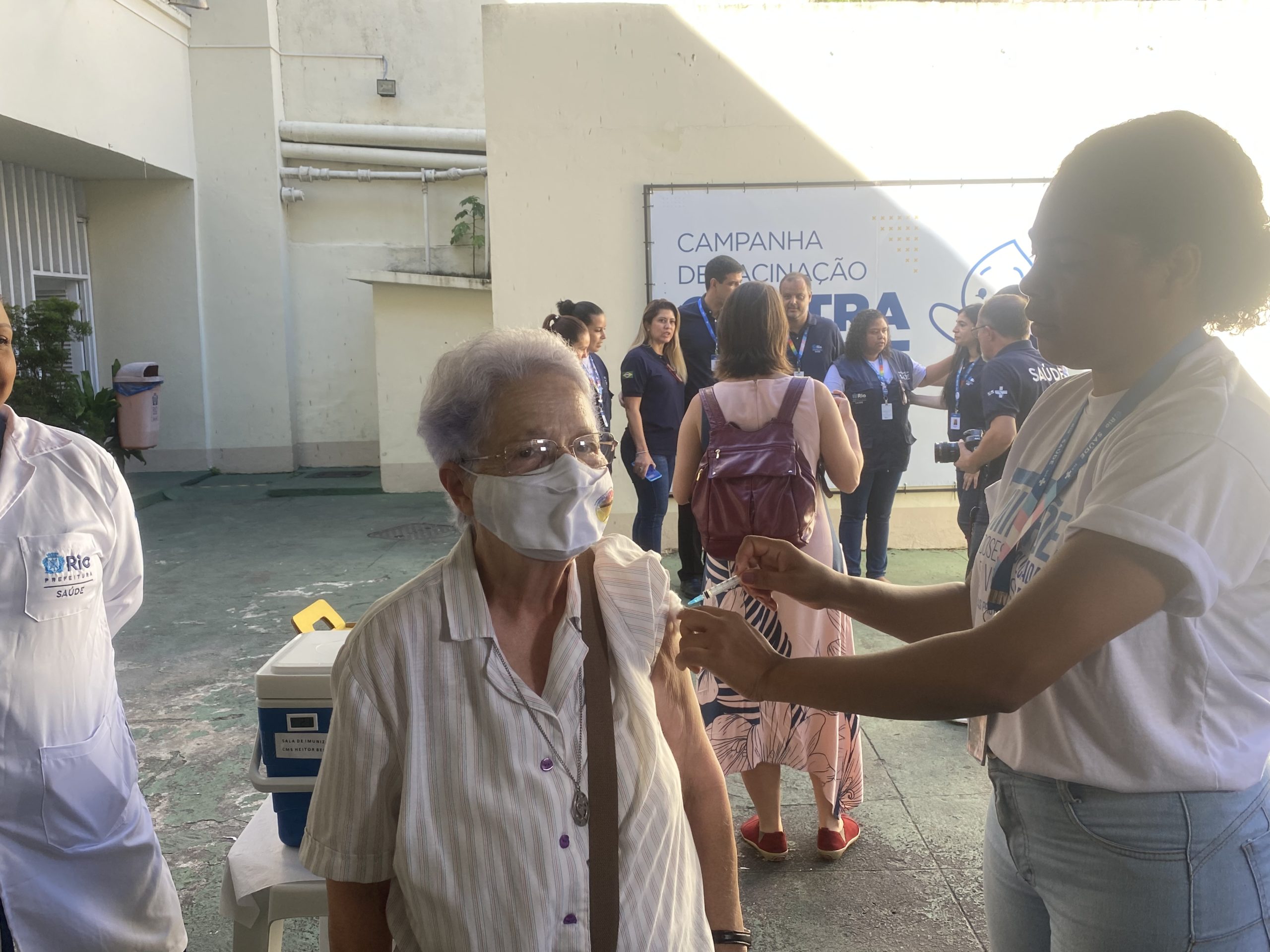 “Com a idade que eu já tenho eu não quero pegar pneumonia não. A vacina já ajuda. Tem que tomar a vacina, vamos colaborar com a saúde nossa e do povo todo do Rio”.