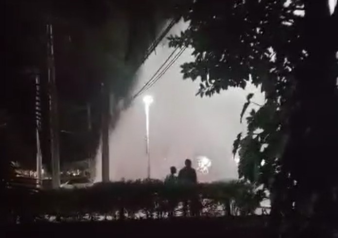 O vazamento é tão grande que chega a ultrapassar um poste de sinalização