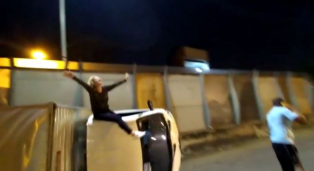 No acidente, a motorista sai de dentro do veículo pela janela sem nenhum ferimento agradecendo a Deus pelo livramento.