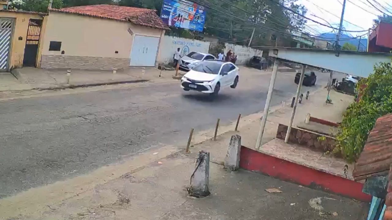 Uma perseguição insana na Estrada do Lameirão, em Santíssimo, na Zona Oeste do Rio, foi flagrada por câmeras de segurança da região. As imagens capturadas na tarde desta quinta-feira (16) mostram os veículos em fuga passando em alta velocidade pelo quebra-molas.