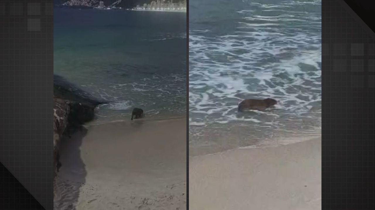 Vídeo: com calor do pré-Carnaval, capivara busca refresco no Arpoador - Super Rádio Tupi