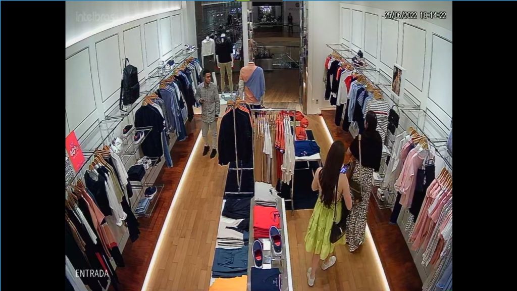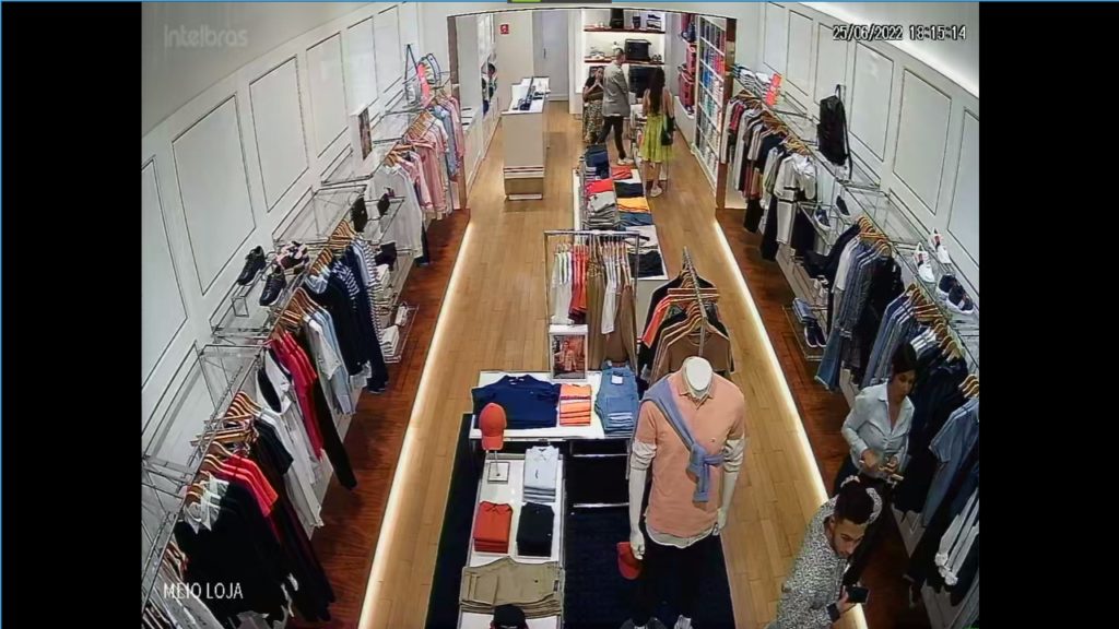No vídeo, é possível ver um dos criminosos da quadrilha se passando por cliente de uma loja de roupas próxima à joalheria, sendo atendido por uma vendedora que fica parada em frente e não suspeita de nenhuma ação.