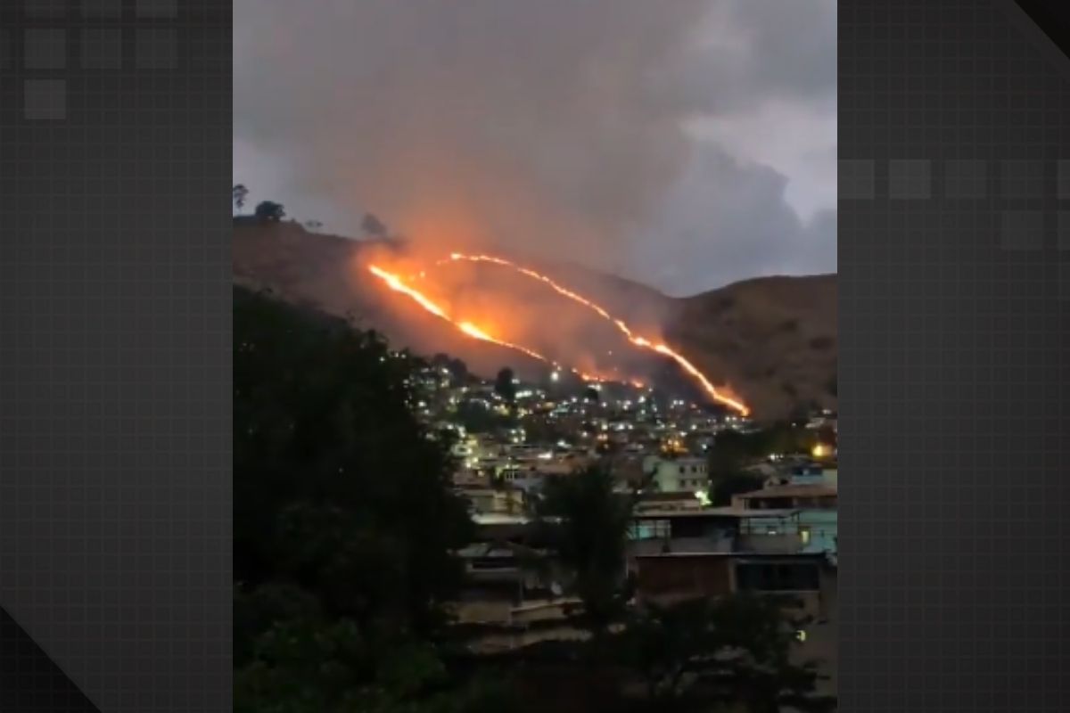 Imagens divulgadas nas redes sociais mostraram a intensidade das chamas, que se espalharam rapidamente pela encosta