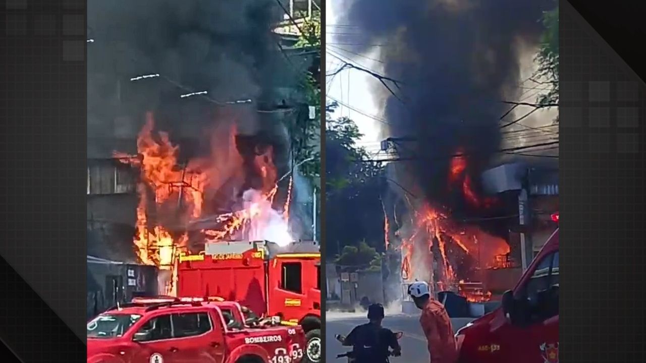 Vídeo: incêndio de grandes proporções atinge restaurante em Duque de Caxias