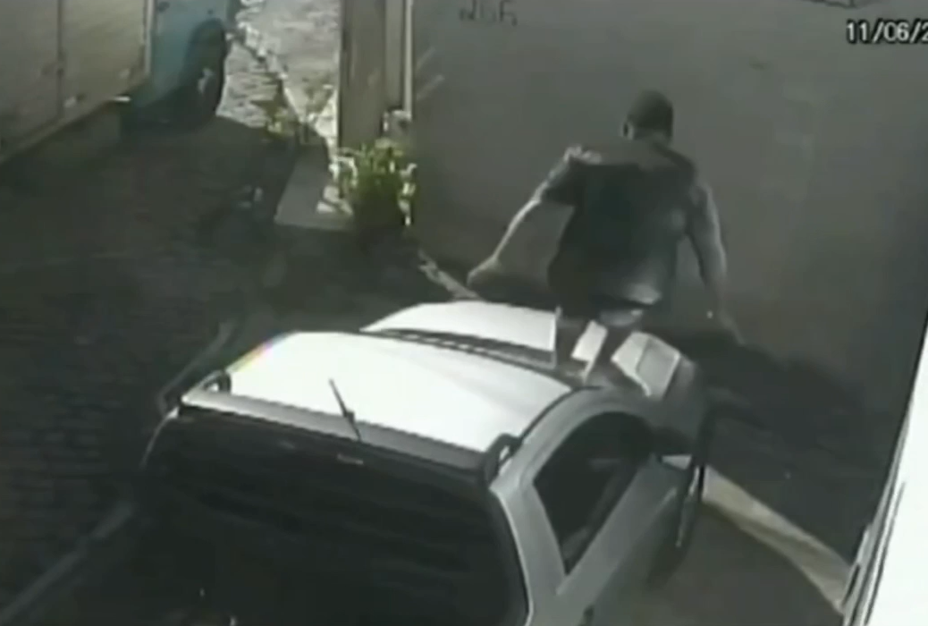 As câmeras registraram os suspeitos fugindo do local do crime, sendo capturados pelas lentes de vigilância de uma oficina mecânica nas proximidades.