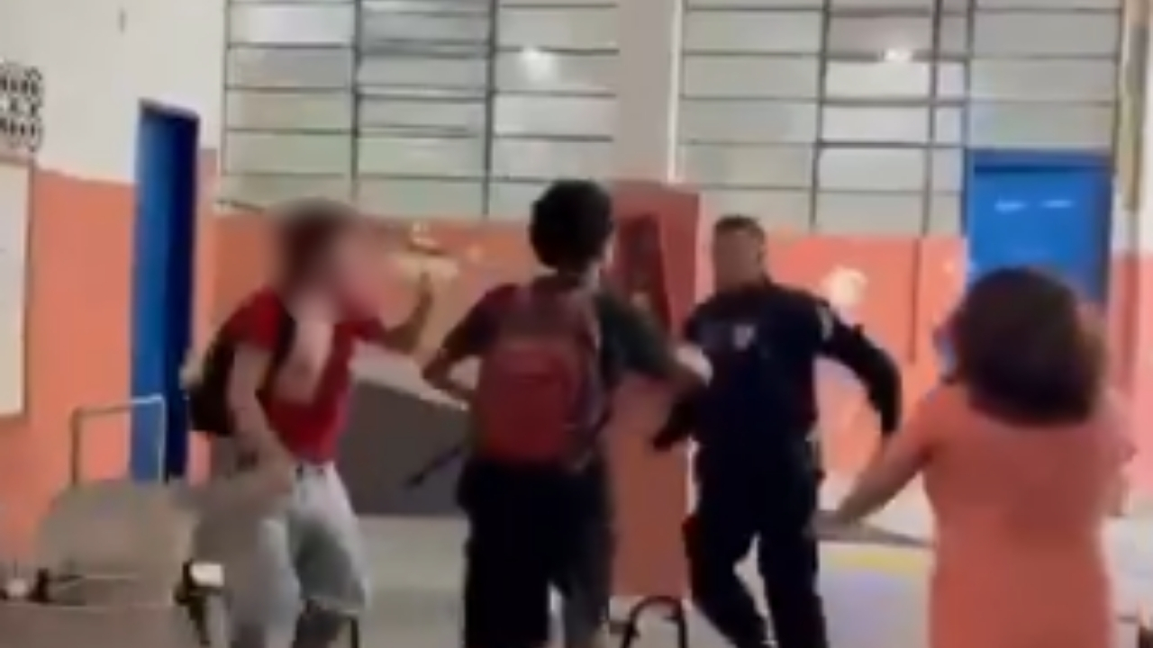 Nas imagens, o policial, identificado como subtenente do Batalhão de Choque, discute com quem filmava. Uma estudante de camisa vermelha tenta intervir e pede para que ele “não encoste”, mas é atingida com dois tapas, que rasgam sua roupa. Um colega se aproxima para ajudá-la, e o agente desfere um soco no rapaz, derrubando-o. Em seguida, o vídeo mostra o policial voltando a agredir a estudante.