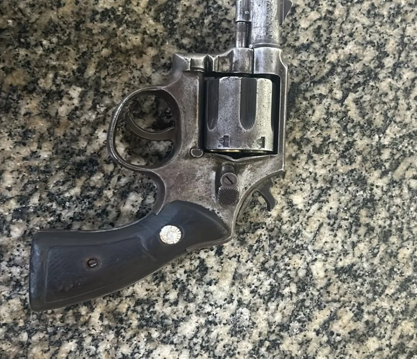 Revólver apreendido em tentativa de assalto em farmácia em Sulacap. Foto: Divulgação / PMERJ
