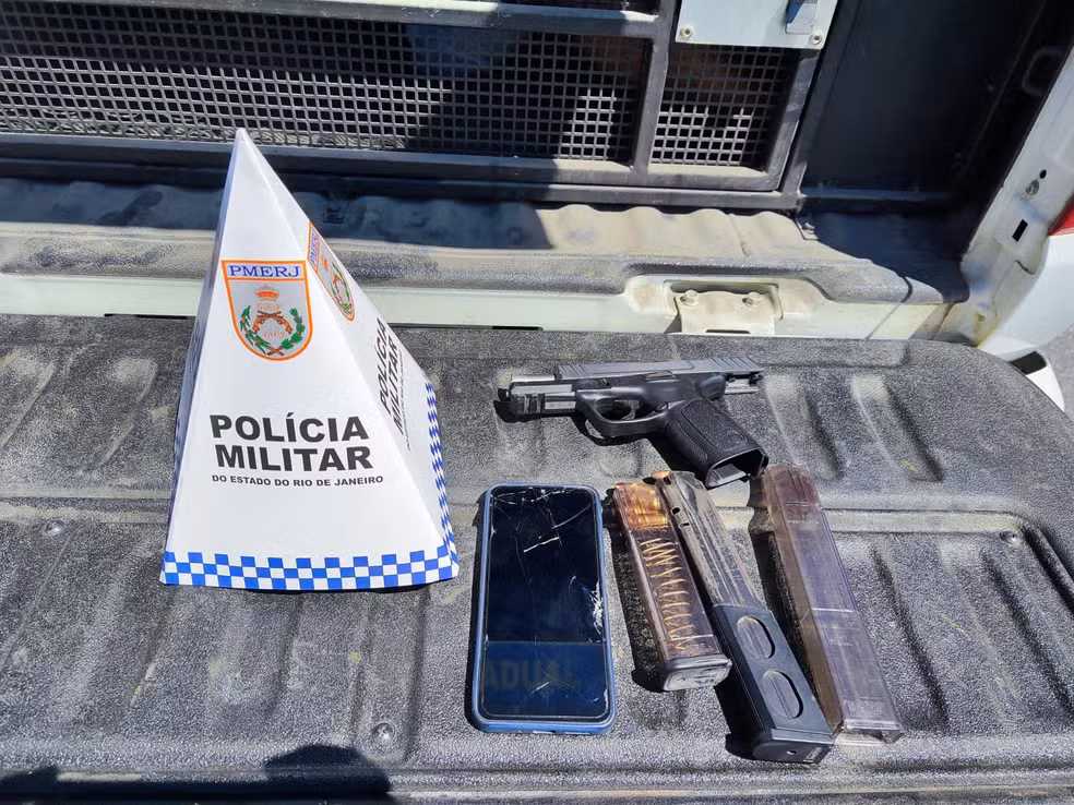 De acordo com a Polícia Militar, dois suspeitos foram presos às margens da RJ-099. Com eles, os agentes apreenderam uma pistola 9 mm com carregador alongado.