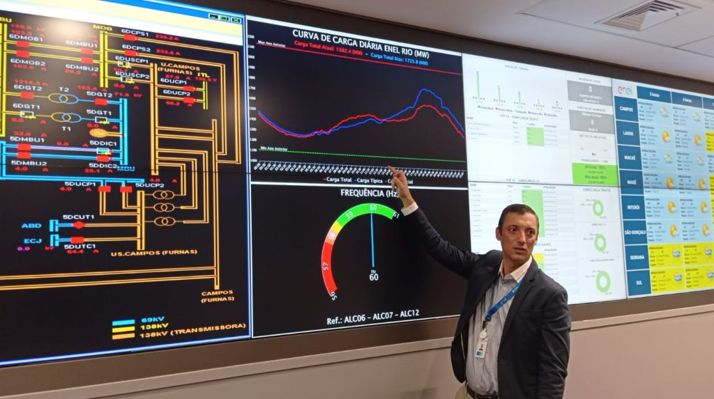 A Enel apresentou à imprensa, nesta quinta-feira, o novo Centro de Operações do Sistema da empresa (COS), na Zona Portuária. O local possui alto apoio tecnológico para agilizar o atendimento aos clientes da empresa, que cobre 66 municípios do Estado do Rio de Janeiro. Thiago Moraes, responsável de Operação e Manutenção, explicou a importância de trabalhar, por exemplo, com o telecontrole, que garante o funcionamento da rede de forma remota.