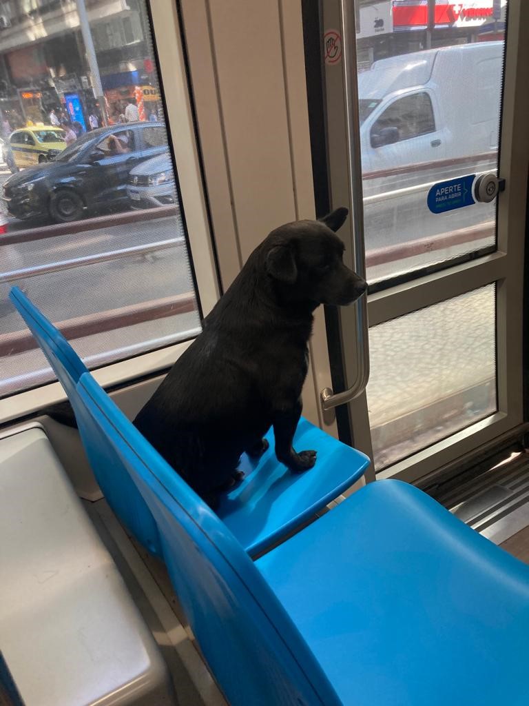 Segundo ela, o cão, que estava sem coleira, entrou no VLT na estação Parada dos Museus, na Zona Portuária e ficou algumas estações dentro da composição até a estação Sete de Setembro.