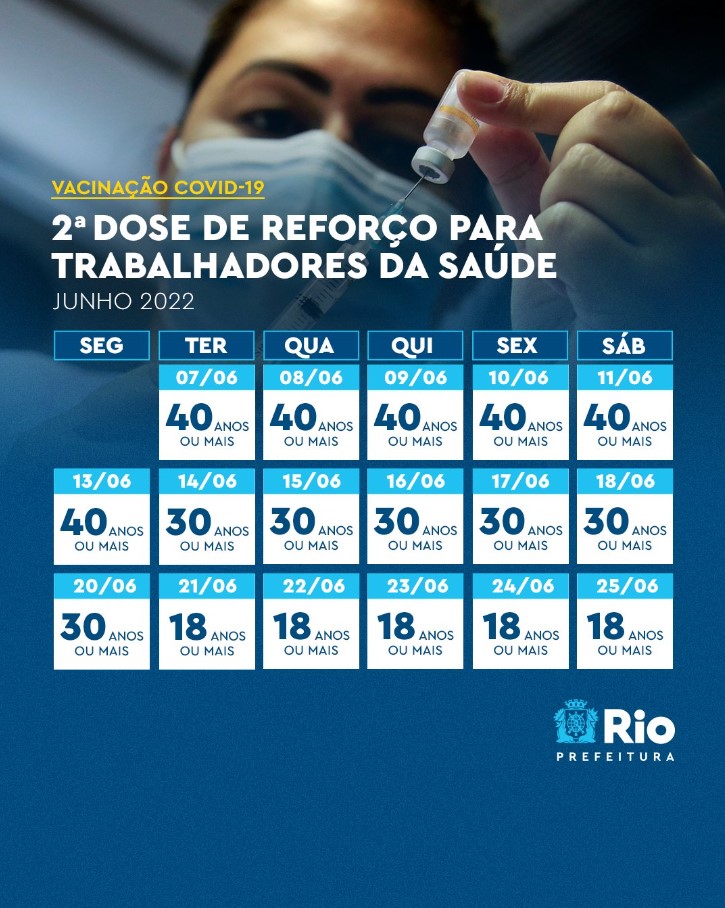A partir desta terça-feira (07), trabalhadores da saúde de 40 anos ou mais já podem tomar a segunda dose de reforço da vacina contra a Covid-19.