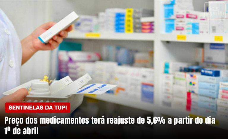 Os preços dos medicamentos vão subir a partir de abril e podem ficar até 5,6% mais caros. A projeção é do Sindicato da Indústria de Produtos Farmacêuticos, Sindusfarma, com base nas regras de reajuste anual, que acontece todos os anos no dia 1º de abril.  O percentual é definido pela Câmara de Regulação do Mercado de Medicamentos, órgão vinculado à Anvisa. Segundo o sindicato, o reajuste não é automático e nem imediato, e a decisão de aumentar ou não os preços é de cada uma das farmácias, o que pode provocar variação de valores.