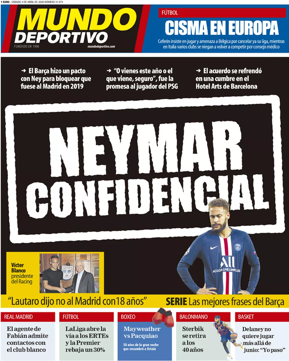 Na edição deste sábado, o “Mundo Deportivo” publicou que o brasileiro teria feito um acordo com o Barcelona para evitar sua ida para o Real Madrid em 2019. O diário ainda diz que ele prometera que concluiria sua saída de Paris em 2020. O “Mundo Deportivo” até citou um hotel de Barcelona, onde o pacto entre Neymar e o Barça teria sido feito.