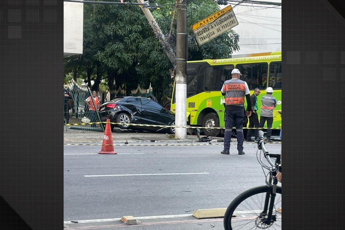 O acidente ocorreu na Avenida Roberto Silveira, na esquina com a Rua Lopes Trovão. As grades de um edifício próximo também foram danificadas no impacto.