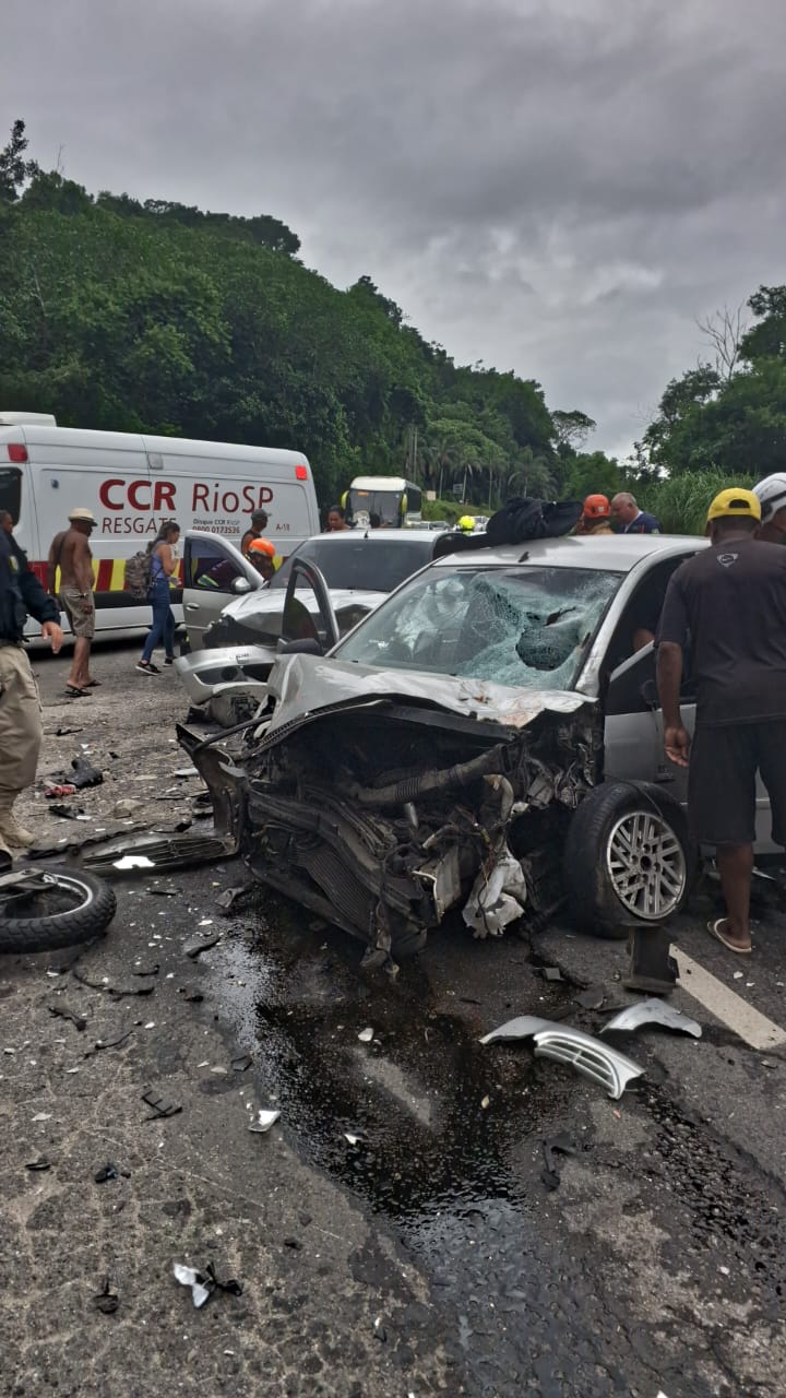 Um grave acidente entre dois carros e uma moto deixou dois mortos e seis feridos na Rodovia Rio-Santos, em Mangaratiba, na Costa Verde do Rio, no início da tarde deste sábado (30). A colisão frontal interditou o trecho da rodovia na altura da Vila Muriqui, no KM 422.