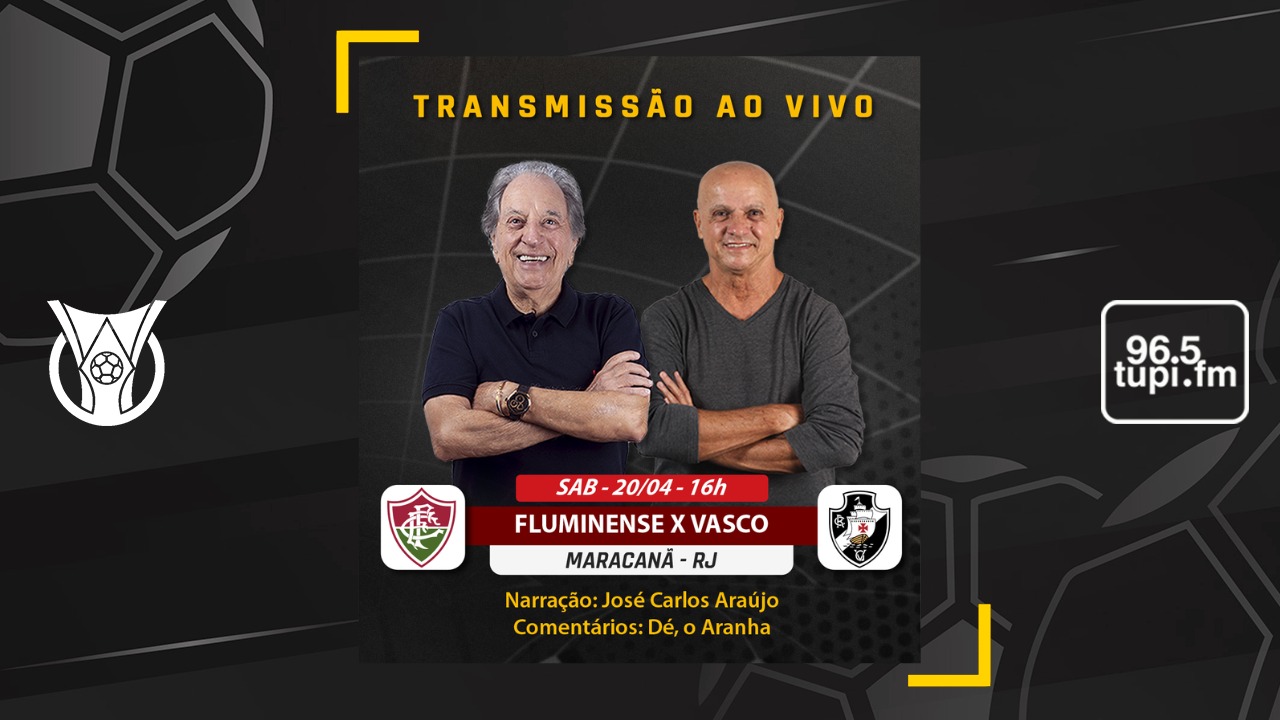 A Super Rádio Tupi transmite todas as emoções do jogo entre Fluminense e Vasco com a narração de José Carlos Araújo, o Garotinho, os comentários de Dé, o Aranha e as reportagens de Sérgio Guimarães e Gabriel Andrezo.
