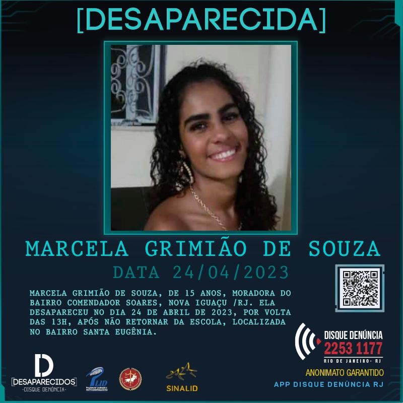 Familiares e amigos da adolescente Marcela Grimião de Souza, de 15 anos, buscam desesperamente por notícias da jovem, desaparecida desde segunda-feira (24). Marcela foi até a escola acompanhada do pai, na manhã do dia 24, e, desde então, nunca mais apareceu.