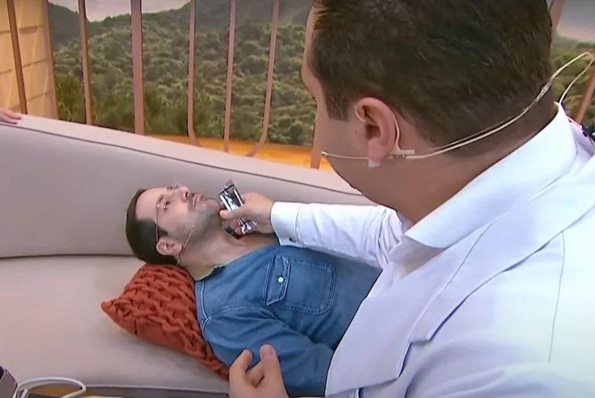 “Tudo começa com um exame muito simples, que é a ultrassonografia. O Paulo, por livre e espontânea pressão, vai fazer aqui, de verdade. É um exame de verdade, vai ter diagnóstico”, disse Regina Volpato.