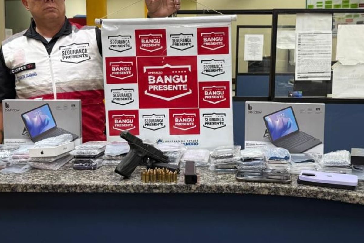 Os agentes recuperaram 77 aparelhos celulares, avaliados em cerca de R$ 200 mil, além da arma usada no assalto.