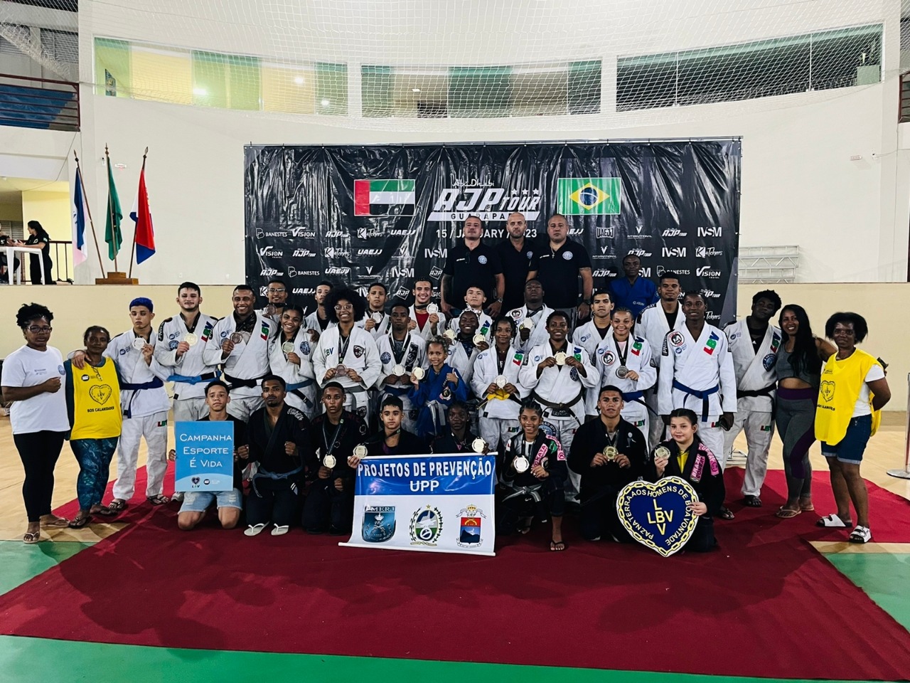 Atletas do Projeto Geração UPP, da Secretaria de Estado de Polícia Militar, conquistaram diversas medalhas no “AJP Teams Cup South América”, competição realizada no Complexo Esportivo Maurice Santos, localizado na cidade de Guarapari-ES, no último domingo (15). O resultado destacou a equipe como uma potência nas artes marciais fluminense.
