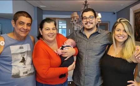 Zeca Pagodinho, de 63 anos, dividiu com seus seguidores no Instagram as fotos do Miguel, seu terceiro netinho. O cantor posou ao lado da esposa, Monica Pagodinho. O bebê é fruto do relacionamento do filho do cantor, Louiz Carlos, com a psicóloga Thays Souza. “Quem aguenta com tanta fofura? Miguel com seus avós corujas, Zeca Pagodinho e Monica Pagodinho.”, diz a legenda.
