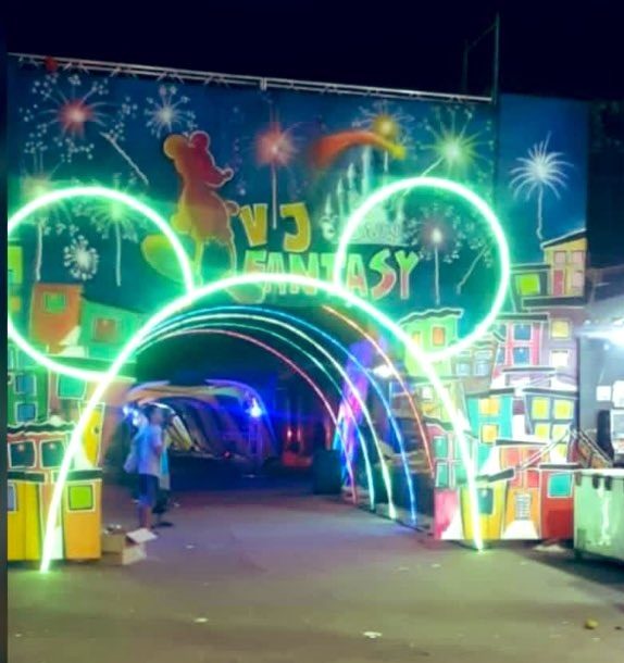 Imagens que circulam nas redes sociais mostram uma mega estrutura na entrada do evento em alusão a Disneylândia