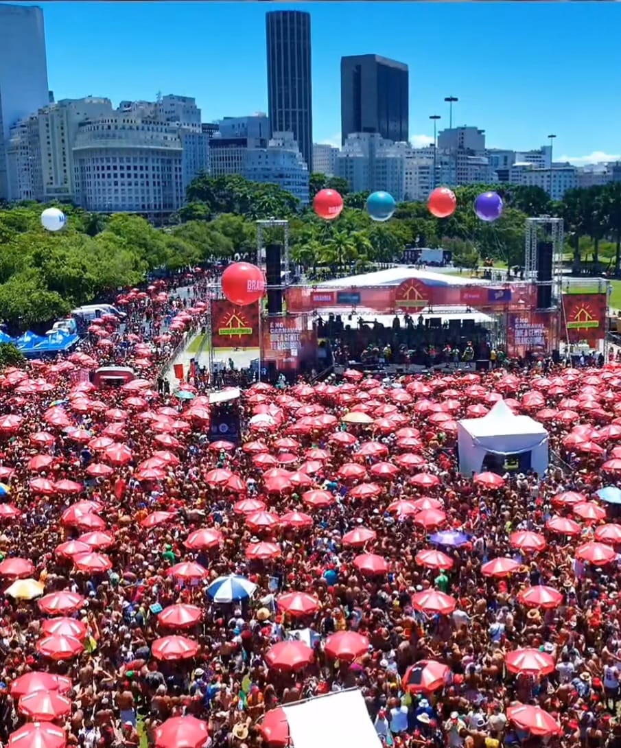O bloco Bangalafumenga está agitando foliões no Aterro do Flamengo, na Zona Sul do Rio. Imagens aéreas feitas pela direção do bloco impressionam pela quantidade de pessoas presentes na festividade.