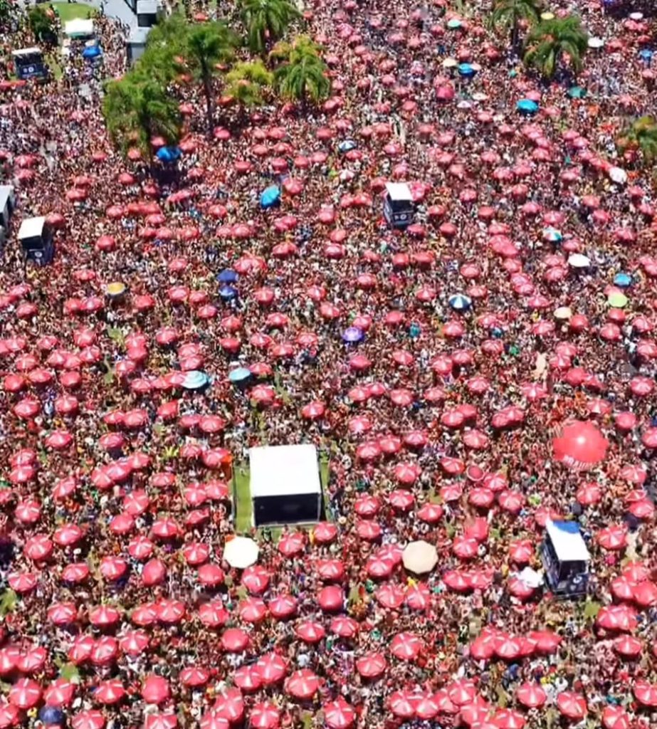 Imagens aéreas feitas pela direção do bloco impressionam pela quantidade de pessoas presentes na festividade