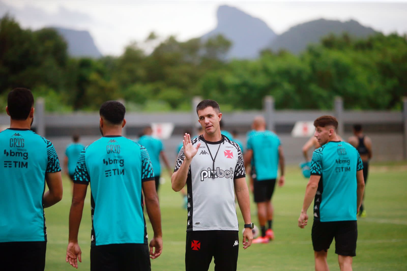 O provável Vasco para o clássico com o Fluminense: Léo Jardim; Puma Rodriguez, Miranda, Léo e Lucas Piton; Rodrigo (De Lucca), Jair e Nenê; Gabriel Pec, Pedro Raul e Erick Marcus. Figueiredo e Robson seguem entregues ao departamento médico e ainda sem previsão de volta.