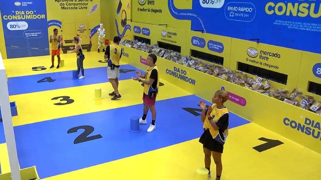 A Prova do Líder do BBB23 desta quinta-feira (9) conta com uma dinâmica em duplade resistência. Os brothers devem separar produtos para entregas do Mercado Livre, patrocinadora master do reality.