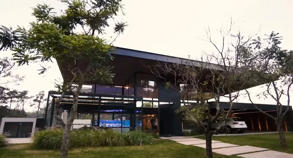 A propriedade é localizada na Granja Viana, na Grande São Paulo. São 1,1 mil metros quadrados de área construída, incluindo: piscina aquecida, espaço gourmet, sauna úmida, salão de festas com entrada independente, cinema com 12 lugares, salão de jogos, academia, aquário para tubarão de 34 litros, aquário de corais com 7 litros, escritório, 4 suítes, copa, cozinha, lavanderia e canil.