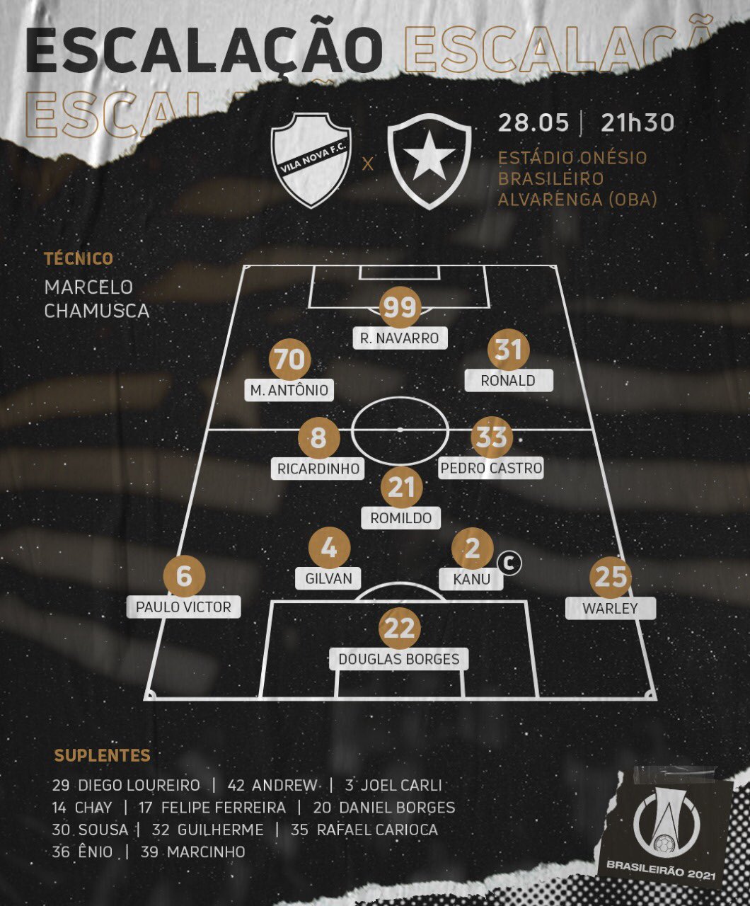 Botafogo está escalado para pegar o Vila Nova pela estreia da Série B do Brasileirão