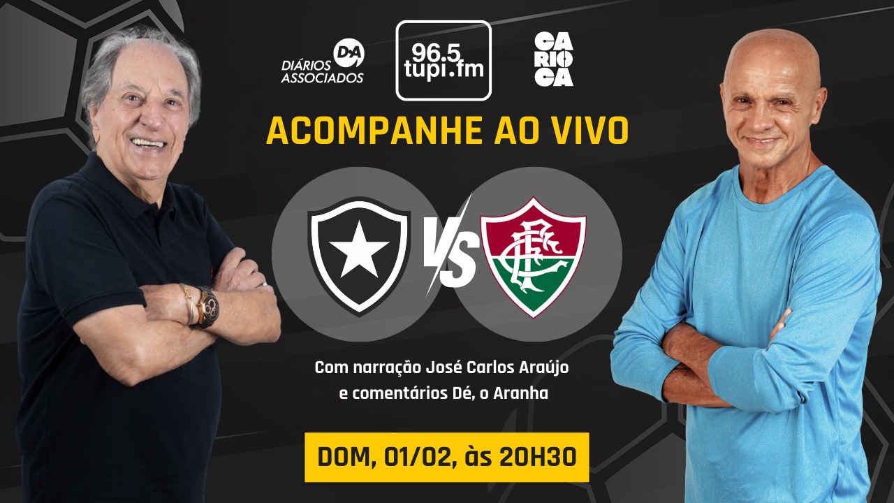 Neste domingo (1), Botafogo e Fluminense se enfrentam no Estádio Nilton Santos em clássico válido pela 5ª rodada do Campeonato Carioca. A bola rola às 20h30, enquanto a Super Rádio Tupi inicia a jornada esportiva às 20h, levando todas as emoções do confronto para o torcedor. A narração será de José Carlos Araújo, com os comentários de Dé Aranha. Assim, o público acompanha cada lance de Botafogo x Fluminense ao vivo, em mais um capítulo de um dos clássicos mais tradicionais do futebol carioca.