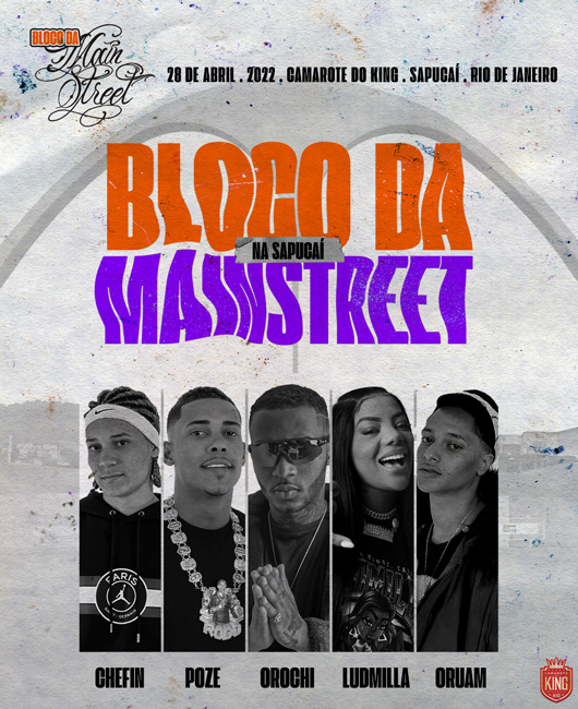 O bloco da gravadora mais ouvida do RAP irá apresentar Orochi (um dos principais nomes do cenário do hip-hop nacional e fundador da Mainstreet), Poze, Ludmilla, Chefin e Oraum.