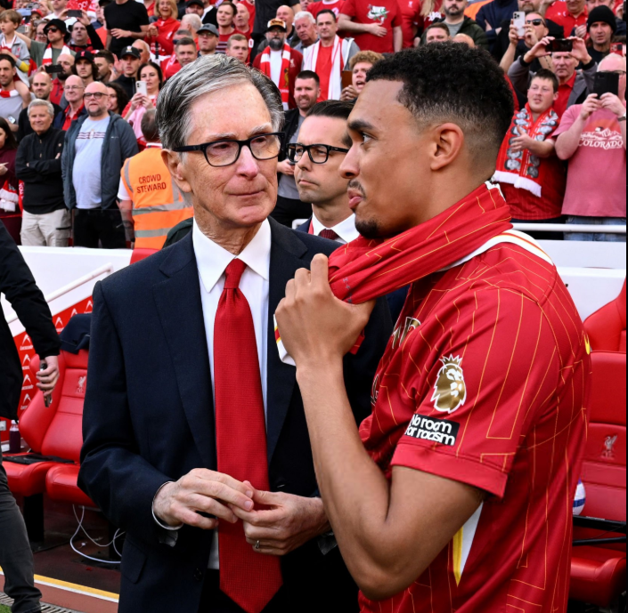 O lateral-direito e ídolo do Liverpool, Trent Alexander-Arnold, teve muitos motivos para se emocionar neste domingo. Campeão inglês com seu clube do coração, o jogador pareceu bastante inquieto na comemoração, o que pode significar uma saída para o Real Madrid, que já se desenrola há pelo menos seis meses. No meio da festa, uma conversa com o dono do Liverpool, John W. Henry, chamou atenção.