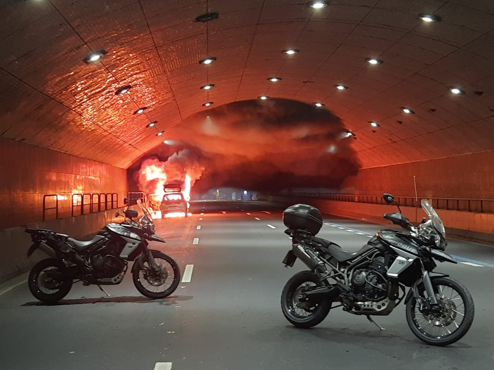 Carro pega fogo e interdita Túnel Novo, no Leme, na Zona Sul do Rio de Janeiro