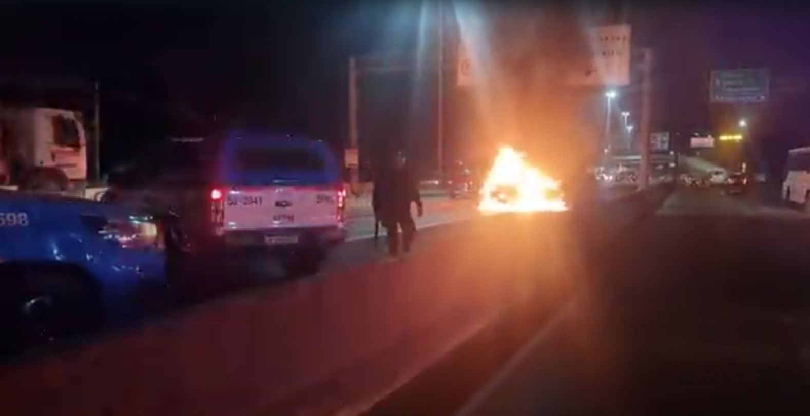Carro pega fogo na Avenida Brasil após criminoso bater na mureta durante tentativa de fuga