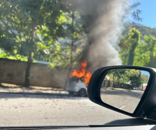 Carro pegou fogo na Estrada dos Três Rios, pouco antes da subida da Grajaú Jacarepaguá