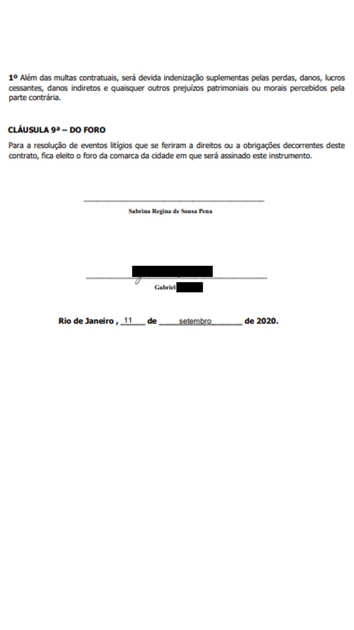 Contrato firmado em nome de uma das vítimas: