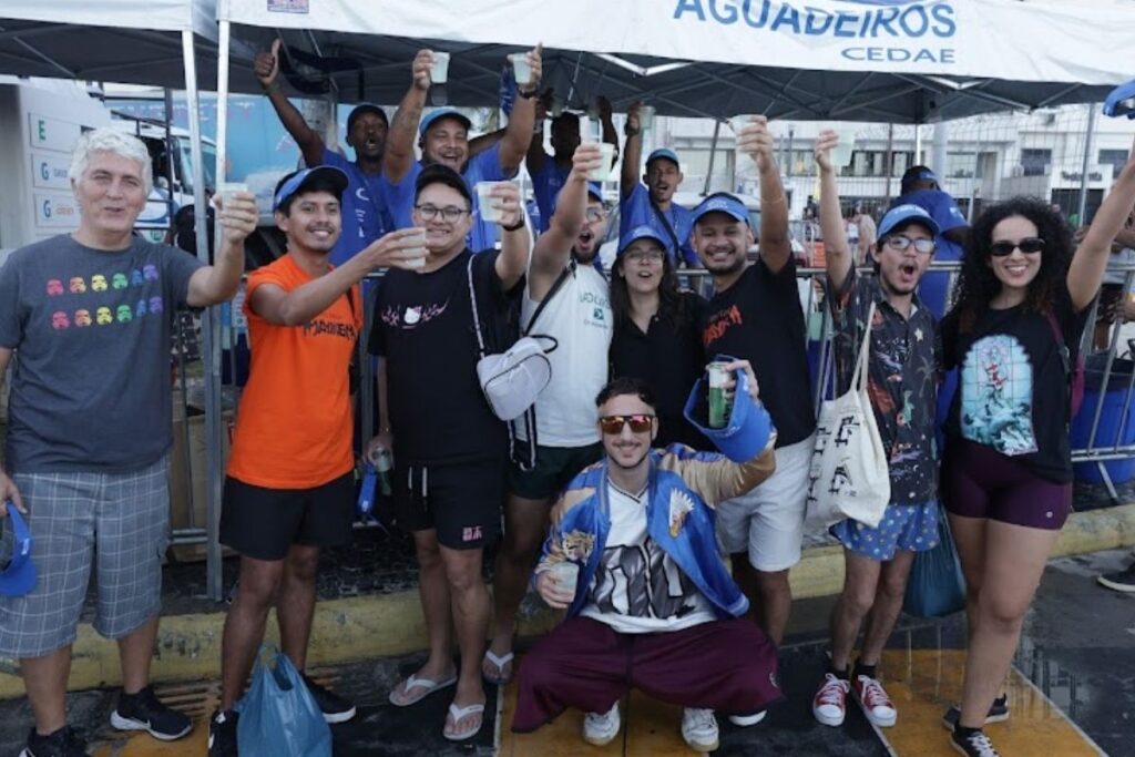 A ação conta com a participação de 100 aguadeiros, que entregam a água em copos biodegradáveis. A frota de apoio é composta por uma Kombi e seis bicicletas, que circulam pelos pontos de distribuição. Além da hidratação, os fãs recebem viseiras para se protegerem do sol.