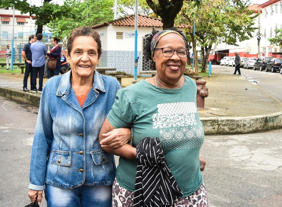 “Me mudei para cá com meu marido, que lutou na guerra, e filhos. Hoje já sou tataravó e muitos dos meus parentes vivem aqui. Esta reforma é muito importante para nós, o conjunto estava precisando e ficou tudo lindo”, disse Dona Benedita, ao lado de sua filha, Hermínia, também moradora do local.