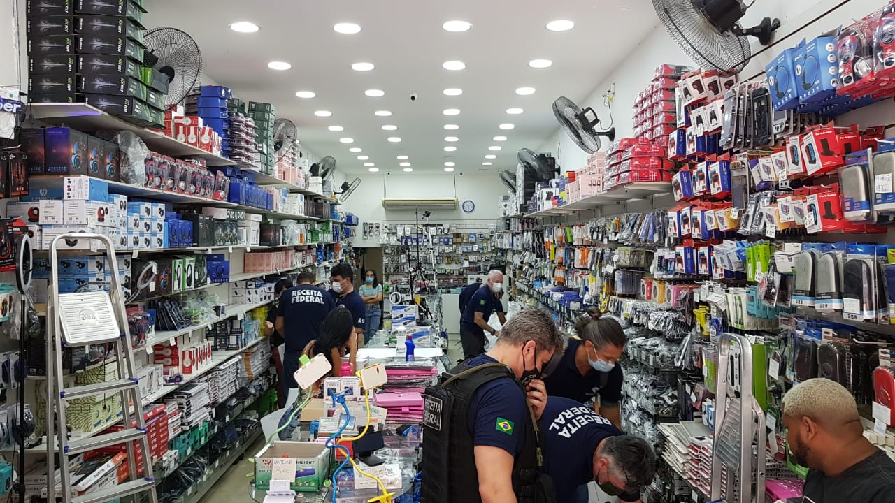 Segundo a polícia, em dois estabelecimentos comerciais foram encontrados produtos com indícios de falsificação de marcas e sem a certificação de agências reguladoras, como Anatel e Inmetro. Entre as mercadorias, há carregadores, fones de ouvido, controles de videogame e outros equipamentos eletrônicos.