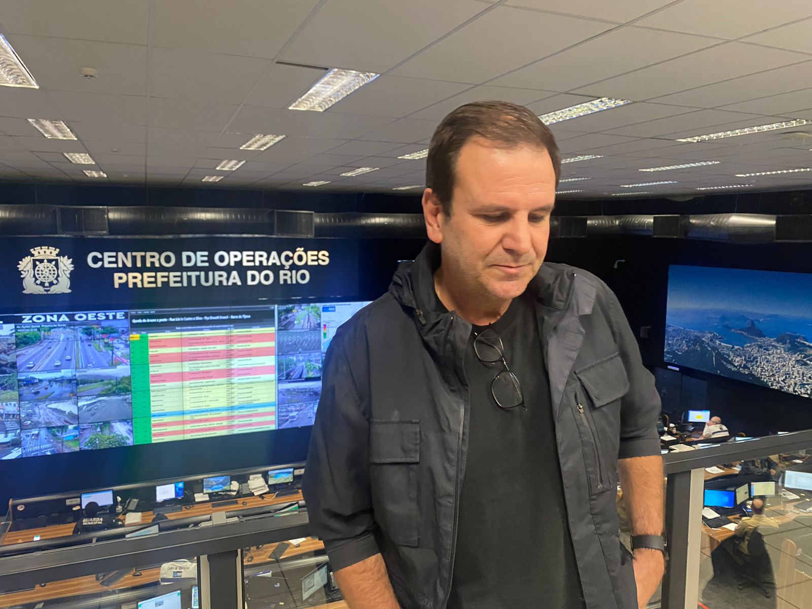 Prefeito do Rio, Eduardo Paes, fala sobre situação da chuva na cidade – Foto: Tatiana Campbell/ Super Rádio Tupi