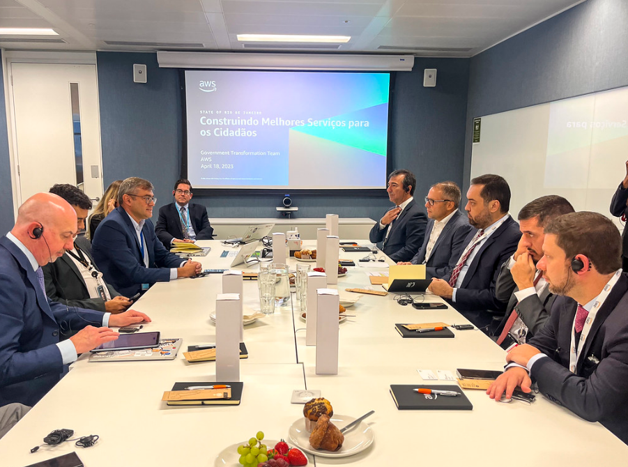 Pensando em aprimorar a governança digital no Rio de Janeiro, o governador Cláudio Castro se encontrou, nesta terça-feira (18), em Londres, na Inglaterra, com executivos da Amazon Web Services (AWS), que reconfirmou os planos de instalação de uma nova infraestrutura no Estado, inicialmente anunciada em fevereiro de 2022.