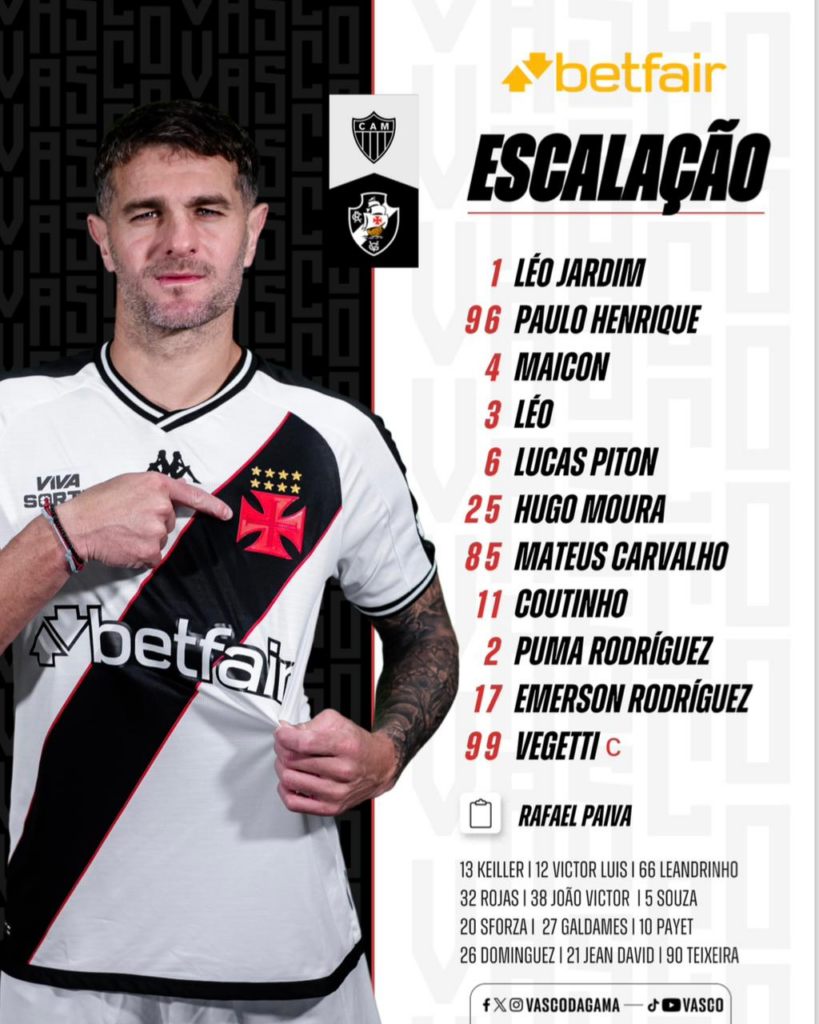 Com Maicon de volta e Puma no ataque, Vasco está escalado para enfrentar o Atlético-MG