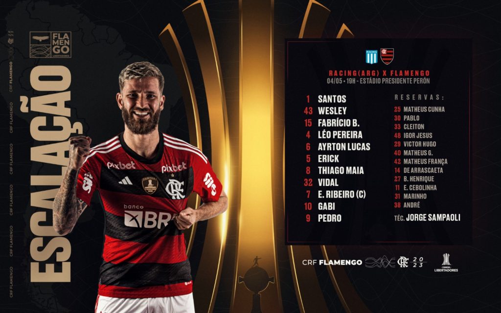 Com Pulgar entre os titulares, Flamengo está escalado para encarar o Racing pela Libertadores